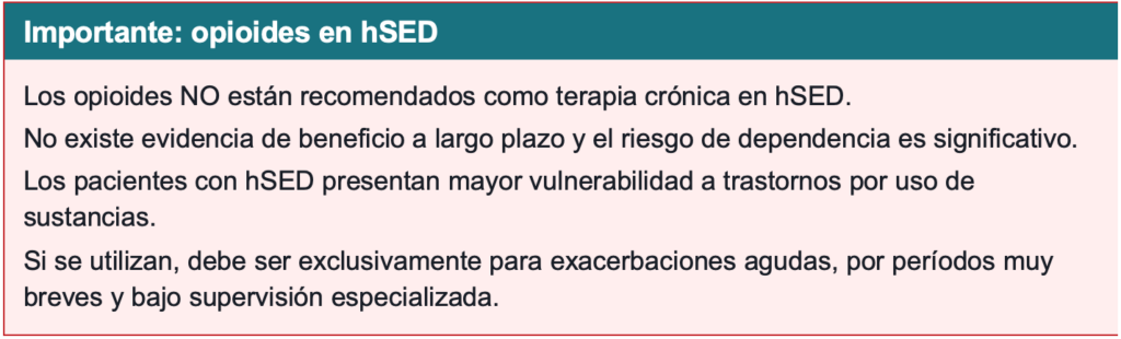 El dolor crónico es la manifestación más discapacitante del hSED: afecta al 90-100 % de los pacientes con intensidad moderada a severa. Su origen es multifactorial, lo que exige un enfoque terapéutico igualmente complejo: