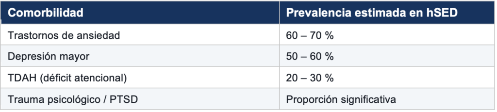 La prevalencia de trastornos del ánimo y de la conducta en hSED supera ampliamente a la población general: